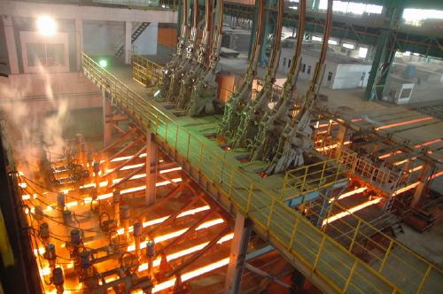 而其中的引錠桿的作用是在連鑄過程中拉動鋼坯,在鋼水凝結(jié)成鋼坯之后,被引錠桿從下方拉出。在將鑄坯拉出之后,下一步工序就是二次冷卻,在二次冷卻道中,會有冷卻水不停的噴射在鋼坯上,對鋼坯的冷卻,然后再將鋼坯送至拉矯機(jī)。拉矯機(jī)的主要作用就是將鑄坯拉直,讓其具有更好的特性,方便下一步的進(jìn)行。就是切割設(shè)備,切割設(shè)備按照要求將鋼坯切割成不同形狀,切割完成之后,連鑄工藝算是完結(jié)了。